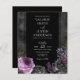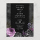 Gothic Purple and Black Floral Wedding Invitations. Faux gold Floral Leaves. Script font highlights with easy to read serif name font. Easy to adjust for your own wedding needs. All in one invitations