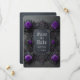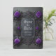 Announce your wedding plans in style with this gothic themed save the date flat card featuring purple roses on a fancy frame and your names and wedding date to personalise. Designed by Susan Coffey. Images generated with AI.