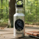 Set the tone for a dark academia aesthetic with this personalised stainless steel water bottle. The design features an illustrative raven portrait encased in an ornate filigree frame rendered in a monochrome silver and black palette. It is the perfect way to celebrate an outdoor adventure or a thoughtful gift for a nature lover.