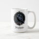 Set the tone for a moody morning ritual with this personalised ceramic coffee mug. This striking design features a detailed black raven perched within an ornate Victorian frame, rendered in a sophisticated charcoal and ink palette. It is the perfect way to celebrate a special occasion or a thoughtful gift for a literature and nature enthusiast.