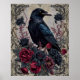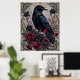 Set the tone for a moody mystical vibe in a gothic teen room with this striking poster. This design features a detailed black raven subject paired with a vintage floral pattern rendered in a deep crimson and charcoal palette. It is the perfect way to celebrate a bedroom makeover or a unique gift for an edgy alt teen.