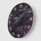 This large clock features a gothic-style raven perched among deep purple flowers, set against a moody backdrop with vintage textures. Roman numerals complement the design with an old-world elegance, making it perfect for dark romantic interiors, Halloween accents, or lovers of mysterious, nature-inspired decor.