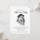 Unique artistic raven and skull pecking out the words never more. For a gothic Poe inspired Halloween party. Personalise with your party information.