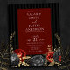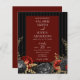 Gothic Red and Black Floral Wedding Invitations. Faux gold Floral Leaves. Script font highlights with easy to read serif name font. Easy to adjust for your own wedding needs. All in one invitations