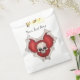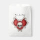 This party favour bag has a Gothic red heart with a border of white bones and a white skull in the centre of the heart.