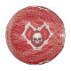 This baseball is deep red with Gothic red hearts outlined with bones with skulls in the centre on a spiral line pattern. Customise your text with the templates.