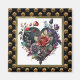 Gothic Red Rose and Heart Magnet in a gold frame on a gold and black background.