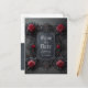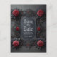 This gothic themed personalised wedding save the date announcement postcard features red roses on a dark grey frame for your wedding announcement info. The back of the postcard has more of your wedding details for you to customise as well. Congrats on your engagement! Designed by Susan Coffey. Image generated with AI.