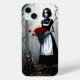 +AI ART+ Gothic robot girl with red flowers and her glitched kitty standing in a forest. Are you her true love? She's waiting for you.