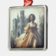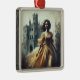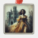 There’s something undeniably captivating about the imagery of gothic romance—shadowed corridors, candlelit halls, and a lone heroine caught between fate and fear. This square metal Christmas ornament brings that eerie, romantic aesthetic to life with a vintage-inspired illustration of a woman in a flowing yellow gown fleeing from a looming castle under a gloomy sky. Evoking the dramatic cover art of classic gothic novels, this atmospheric and moody design makes a striking addition to any collection of Christmas decorations and holiday decorations. Lovers of gothic literature, retro book cover art, and all things darkly romantic will find themselves drawn to the timeless allure of this piece.