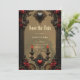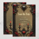 Gothic Romance: Hidden Passion. An ornate frame in the Gothic style, designed with fine black filigree, featuring delicate lines and intricate details reminiscent of ancient, ornate carvings. Embedded in the frame are bright red roses, their velvety blossoms creating a vibrant contrast to the dark filigree, underscoring the romantic mood. Heart-shaped ornaments adorn the corners and edges of the frame. Two black candles with red flames glow softly, lending the overall picture a warm, slightly sombre touch.
