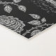 A darkly romantic and macabre seamless pattern featuring intricate illustrations of thorny rose bushes, blooming roses, spiderwebs with spiders, and skeletal hands emerging from the earth. The monochromatic black and white design creates a vintage, gothic, and slightly spooky aesthetic.
