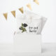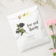 Gothic and rustic wedding favour bag featuring illustration of black rose on a white background. The text says "love and thanks."