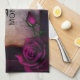A kitchen towel with a gothic look. An old greying parchment paper with hints of purple-red around the edges. A magenta rose in full bloom, a rosebud, and candle on a dark burgundy background creates a beautiful, dark and mysterious gothic design. Personalise with your monogram letter and name.