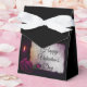 Valentines day favour box with a gothic look. An old greying parchment paper with hints of purple-red around the edges, Happy Valentine's Day written inside. A magenta rose in full bloom, a rosebud, and candle on a dark burgundy background creates a beautiful, dark and mysterious gothic design.