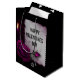 A gift bag with a gothic look. An old greying parchment paper with hints of purple-red around the edges. A magenta rose in full bloom, a rosebud, a candle, and silver locket on a dark burgundy background creates a beautiful, dark and mysterious gothic design.