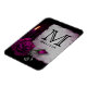 A personalised monogram flex magnet with a gothic look. An old greying parchment paper with hints of purple-red around the edges. A magenta rose in full bloom, a rosebud, a candle, and silver locket on a dark burgundy background creates a beautiful, dark and mysterious gothic design. Personalise with your monogram letter and name.