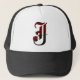Old English mediaeval font initial J, textured in two layers. The top in deep red pitted metal, the bottom in black smooth metal with a red reflection. As decoration a blood-red rose,nearly wilted. A monogram that suits people with a dark, gothic taste as well as rose and flower lovers.