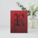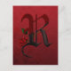 Old English mediaeval font initial R, textured in two layers. The top in deep red pitted metal, the bottom in black smooth metal with a red reflection. As decoration a blood-red rose, nearly wilted. A monogram that suits people with a dark, gothic taste as well as rose and flower lovers.