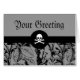These items are printed with a dark rose pattern and accented with a skull and crossbones. Enter your own name or text. Click on "customise it" if you would like to change the background colour or add a further message inside.