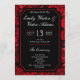 This is a gothic-styled wedding program that you can customise. The design features blood-red roses and a red-bordered black background with white lettering that details your wedding ceremony details in a darkly elegant style. Edit the template to your heart's content and then simply print what you need. See our tall and narrow version if you prefer a card of that size.