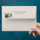 This elegant ivory & sage green gothic Irish envelope has a sage green exterior with customisable Family Name and Address. The inside features a pattern with hand-drawn skulls adorned with green roses, shamrocks, clovers, crows and leaves, all against an elegant white background. Simply click on "Personalise this Template" to insert your own information.