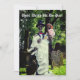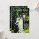 This invitation has a Gothic feel with a bride carrying his bride through a cemetery.