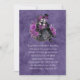 Gothic Skeleton Wedding Invitation, An elegant and macabre wedding invitation featuring a skeleton bride and groom dancing against a deep purple background with ornate gothic flourishes. Skeleton bride groom wedding invitation, purple gothic wedding invite macabre, dark romantic wedding stationary skulls, ethereal purple floral bone wedding, Halloween wedding theme invitation skeletons, vintage victorian gothic nuptial cards, till death skeleton couple invite, moody purple wedding aesthetic bones, artistic skull wedding invitation suite.