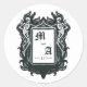 Gothic skeleton love initials sticker. Two skeletons touching hands frame this card which is dark and moody. Perfect for your gothic or Halloween wedding. See coordinating items in our shop, Enchanted Finch.