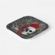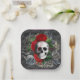 Gothic Skeleton Skull Red Roses Grey Floral Paper Plate