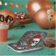 Enhance your party, dining, barbeque, or special occasions with custom-made paper plates. Gothic Skeleton Skull Red Roses Grey Floral Elegant Holiday Theme Paper Plates. Small skulls line the floral vines. Liven up any special event with family and friends. Great party gift idea.