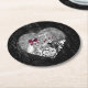 This dark, Gothic themed wedding collection is suited for any time of the year including Day of the Dead, Dia de los muertos and Halloween. The set features skulls, skeletons, ornate scrollwork frames and lush flowers all in black and silver with burgundy accents. Skeletons adorned in bow, ascot and moustache all on a grunge heart background add to the dark, moody feel of this paper coaster. Add your initials and wedding date using the provided template. Search ID866 to see other products and colour options for this design set.