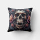 An intricately detailed depiction of a sinister skull surrounded by vibrant roses, adorned with gothic embellishments, blending dark symbolism and beauty in an artistic and surreal representation..