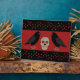 This awesome plaque features a graphic image of a skull with red eyes and yellow teeth covered in cracks. The creepy skull has a large raven standing either side of it like a guardian. The ravens are black with grey legs and claws. They also have beady black eyes.