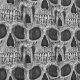 This wallpaper features a Gothic grunge black and white skull head close up design. Spooky, creepy, evil, sinister, macabre, cool, trendy, unique, modern, scary Halloween pattern. Image copyright Marg Seregelyi Photography.