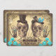 Gothic old vintage wedding invitations with Victorian style skull couple. Perfect turquoise - aqua blue flowers invite for Day of the Dead wedding theme. Please contact me if you need help with customisation or have a custom colour request.