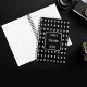 Pattern of white skulls on a black background. This planner will allow you to plan your tasks the way you like.Personalise by add your name, title and year.