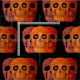 This cute repeat pattern sewing fabric is perfect for your Halloween crafting. It features a funny orange black gothic pop art style skull head design. Fun, spooky three skulls design with googly eyes. Trendy, unique, scary, modern. Image copyright Marg Seregelyi Photography.