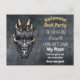 Gothic skull on grey and black background. Skull image and party details (all of which you can customise) in gold and white colour text.