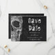 Gothic skull head Save The Date black and white vintage style Halloween wedding invitation flat card. Fun, spooky Hallowedding. Till Death Do Us Part script. Image copyright Marg Seregelyi Photography.