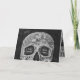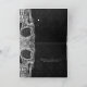Gothic skull head vintage black and white funny Halloween design wedding folded invitation card. Fun, spooky, cool, goth original Halloween wedding invite. Personalise your script. Image copyright Marg Seregelyi Photography.