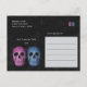 Gothic Skull Head Pink Blue Hallowedding Invitation Postcard