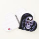 This heart-shaped notebook features a cracked skull with a maple leaf detail, surrounded by gothic feathers. A hauntingly unique writing companion.