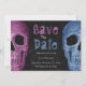 Gothic skull head Save The Date pink, blue, black vintage style Halloween wedding invitation flat card. Fun, spooky Hallowedding. Till Death Do Us Part script. Image copyright Marg Seregelyi Photography.
