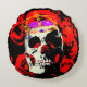 Gothic Skull Red Roses Round Cushion