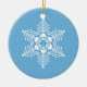 This gothic themed holiday ornament features snowflakes made with little skulls.
