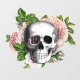 This whimsical Halloween design features an anatomy drawing of a skull with pink roses.