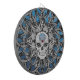 Gothic style skull with pentagram is surrounded by caged screaming skulls.