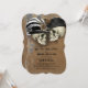 Steeped in gothic elegance, this wedding invitation makes a bold and unforgettable statement for a couple drawn to the mysterious and macabre. At its centre are hauntingly beautiful illustrations of the bride and groom as skeletal figures, depicted in Victorian fashion. The bride's skull is crowned with a floral and feather plumed hat with a single rose, while the groom wears a tall brooding top hat. The background of the invitation is a golden brown veined marble with black and lighter veins scattered throughout with an earthy look. This invitation perfectly sets the tone for a darkly romantic, vintage-inspired wedding - one that celebrates eternal love with a ghostly, glamourous twist. Ideal for fall and Halloween weddings or any couple with a taste for the gothic, theatrical, and unexpected.