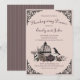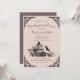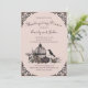This Gothic Thanksgiving Skulls, Pumpkin & Fall Leaves Invitation Invitation features a hand-drawn illustration of a Victorian birdcage with roses, pumpkins, skulls, raven, and foliage in a moody palette of plums and creams, all against and elegant soft blush pink background. Personalise with your event details and RSVP information. The back features an elegant plum and taupe pinstriped pattern.